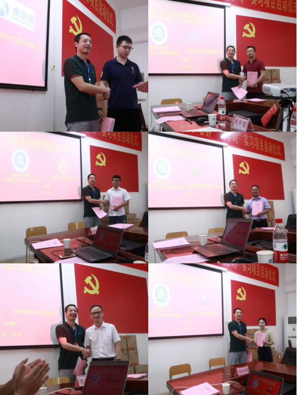 朱根松对企业的到来表示热烈欢迎,以及对各企业就我院招聘工作的支持表达衷心感谢,并将我院发展历史、转设工作、机电工程系学科优势以及师资情况等向企业代表进行了相关介绍。企业代表、宁波永佳电子科技有限公司副总黄小平表示,“通过此次活动,希望加强校企合作、达到企业、学校以及学生的共同发展和共赢,共同实现价值”。之后,校方代表和各企业代表进行了合作签约,会议圆满结束。
