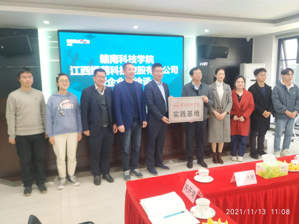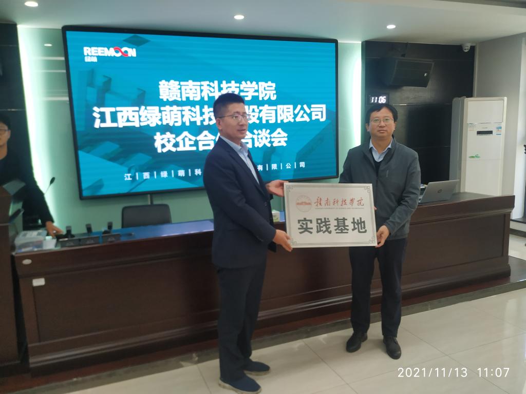 双方举行了隆重的的实践基地授牌仪式,付玉华为江西绿萌科技控股有限公司授牌“赣南科技学院实践基地”,会后肖丽丽带领参观了公司生产基地。