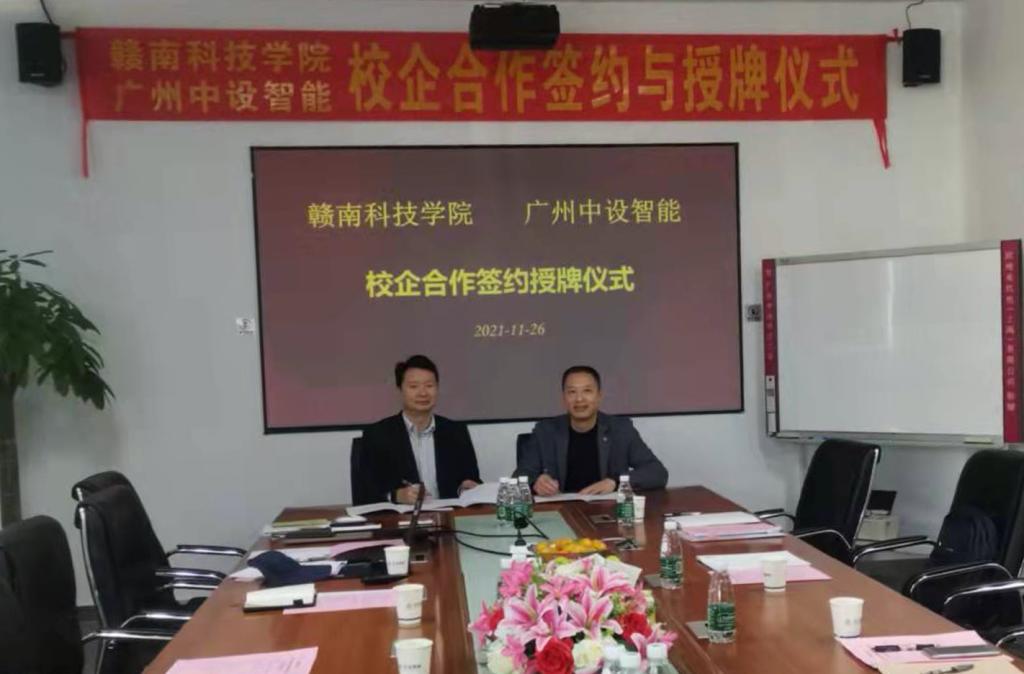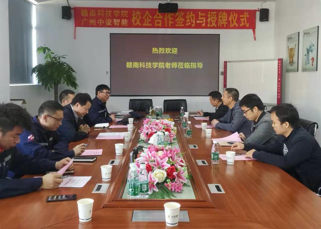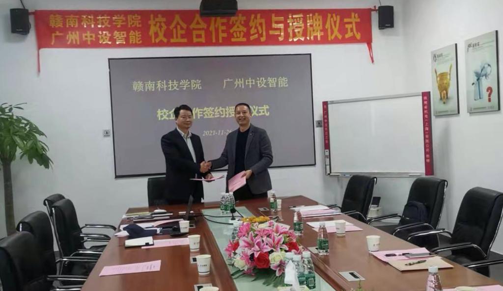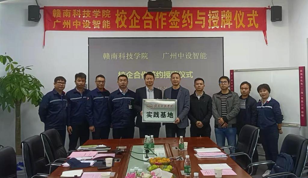 (本网讯:张雨)11月26日上午,赣南科技学院与广州中设机器人智能装备股份有限公司(简称"中设智能")举行校企合作签约仪式。中设智能总经理刘长盛、副总经理刘煜煌与黄冬冬、总经理助理杨勇、管理部部长雷志刚、管理部主任黄鹤丹,赣南科技学院机电工程系主任刘辉、机电系教师袁昌望、张雨、张文俊出席签约仪式。