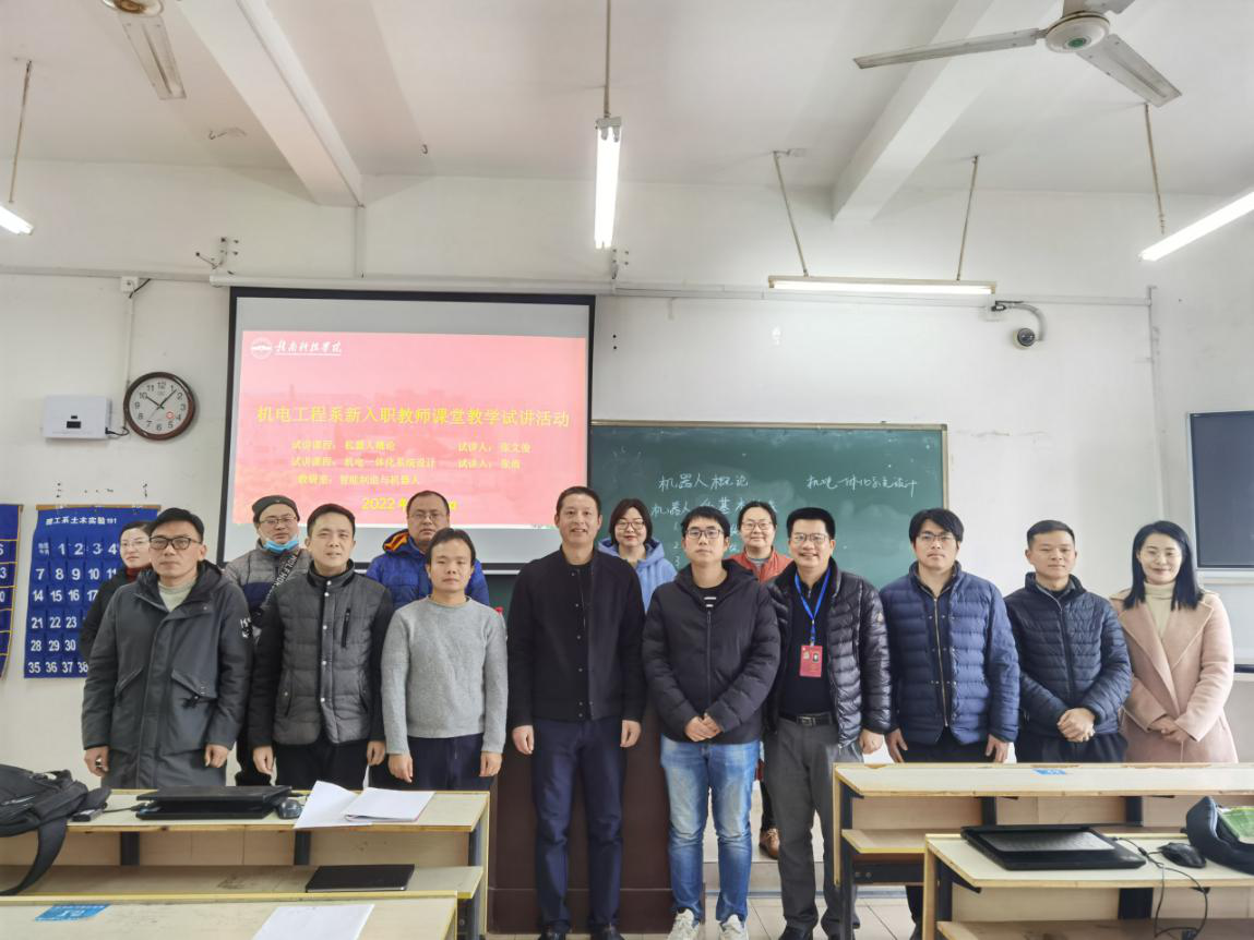 为提高新入职教师的上课水平,增强上课自信心、讲好人生的第一堂课,站稳三尺讲台,机电工程系在刘辉主任和关开荣副主任的关心和支持下,机械与汽服教研室和机电与机器人教研室于2022年1月13日在主教学楼Z104教室共同举行了新入职教师的试讲活动,此次活动共有十多位老师共同参与。