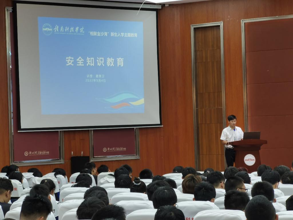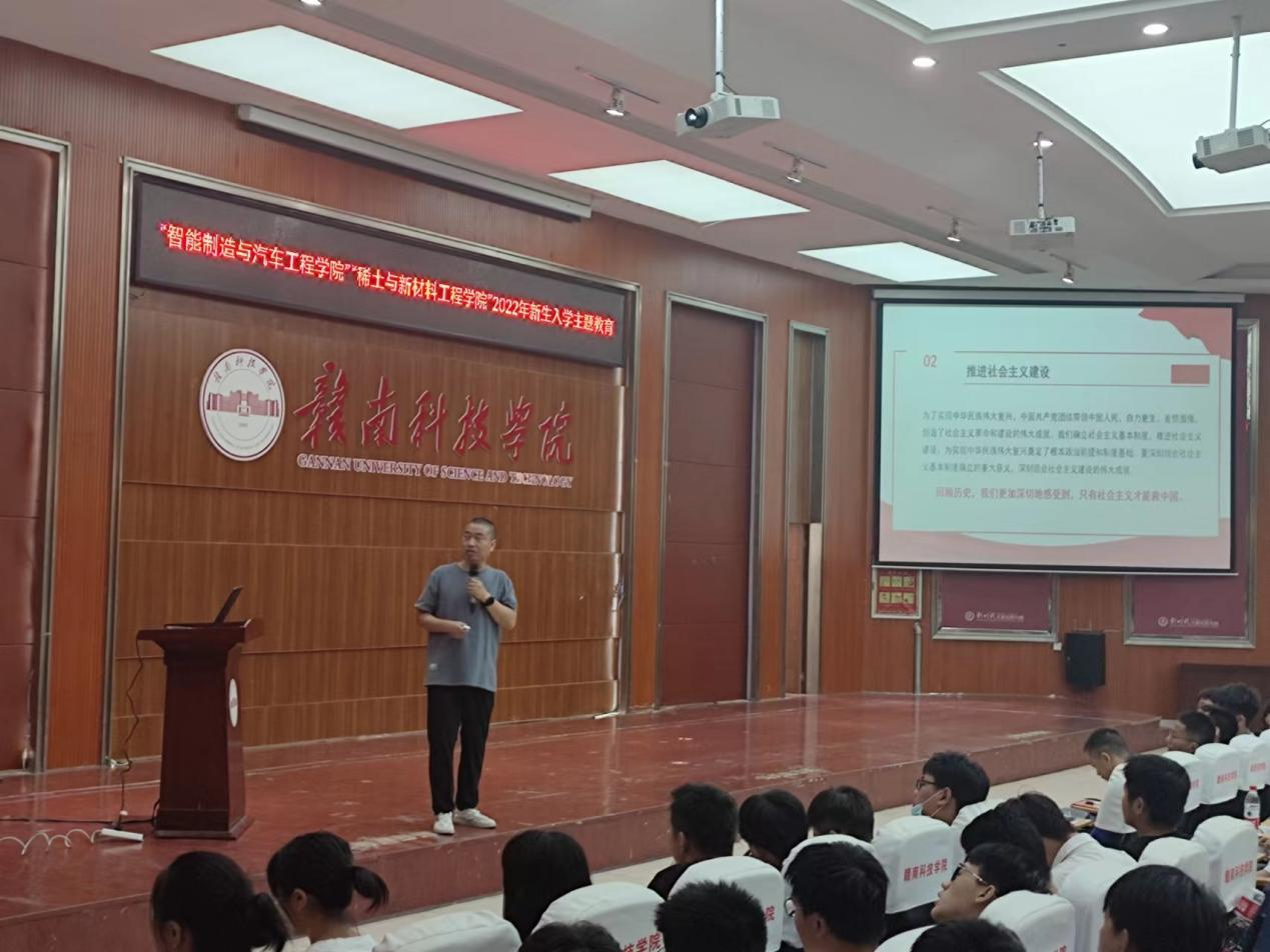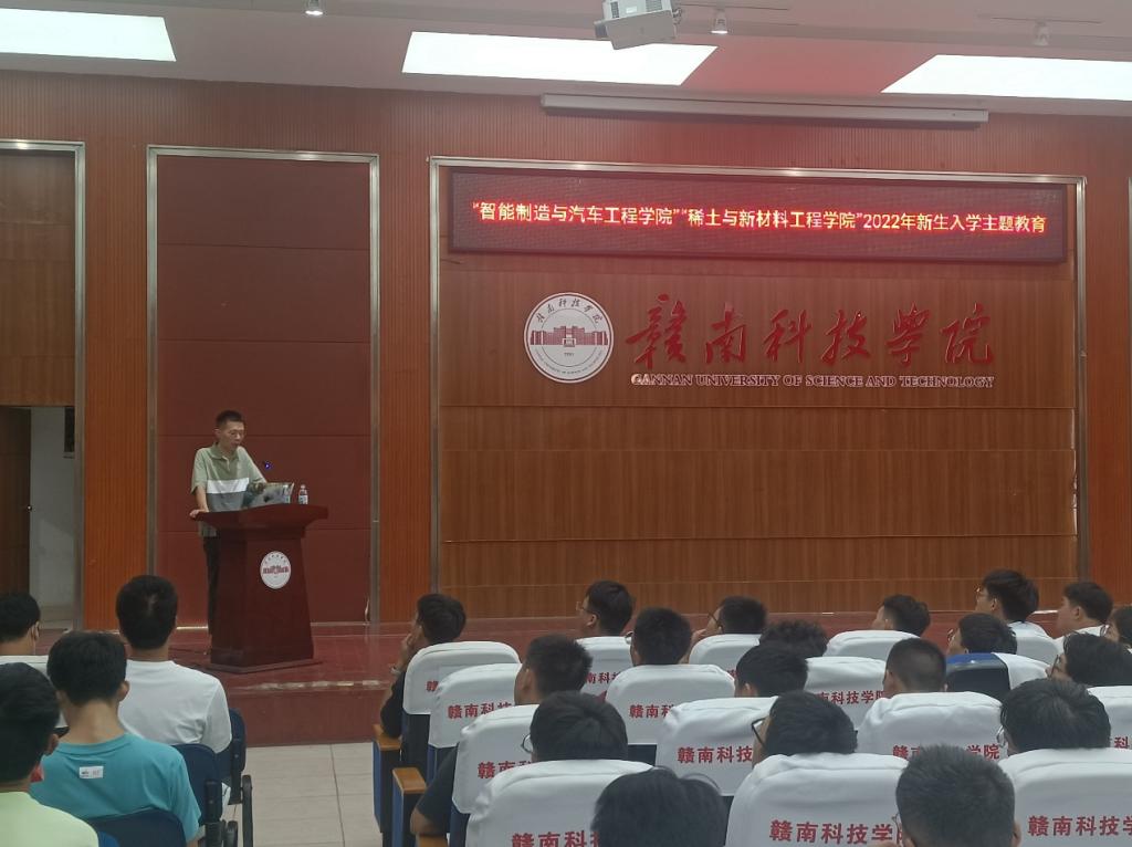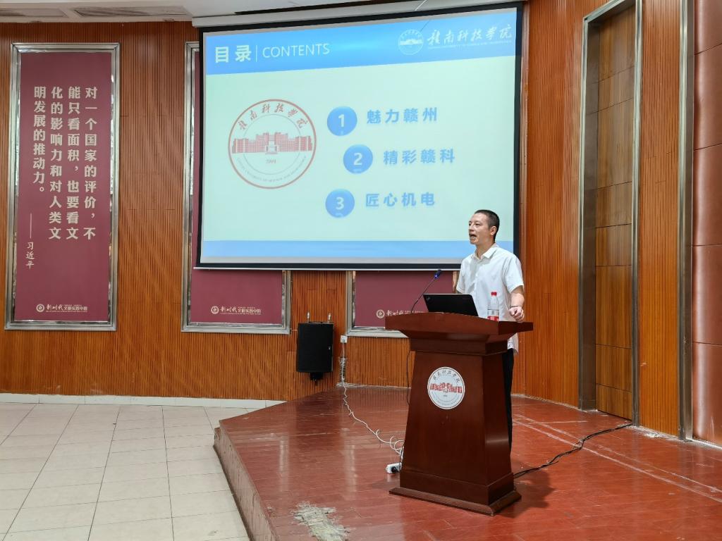 刘辉主任以“魅力赣州,精彩赣科,匠心机电”对22级新生进行了宣讲。他希望同学们在今后的大学生活中严格要求自己,不断努力,在大学中找到自己的人生价值。朱根老师松则对新生开展了党史学习教育,旨在让同学们明白生活在和平、富足的的环境中,身上也肩负着沉甸的责任。其余老师也分别从疫情防控、安全教育、专业建设、教学规划和日常管理等方面向同学们做了宣讲。