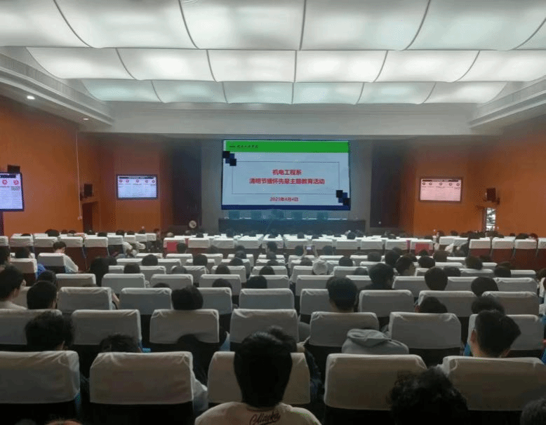 天地英雄气,千秋尚凛然,赣州市革命烈士陵园在苍松翠柏怀抱中,庄严肃穆。下午2时许,敬献鲜花和花圈仪式正式开始,全体学员向为国捐躯的革命烈士三鞠躬,随后默哀一分钟,在此之前,4月4日,机电工程系在校学子们也在逸夫楼学生会议室进行默哀,并观看清明节缅怀先烈纪念视频,与青马班学员们一同缅怀革命英雄。